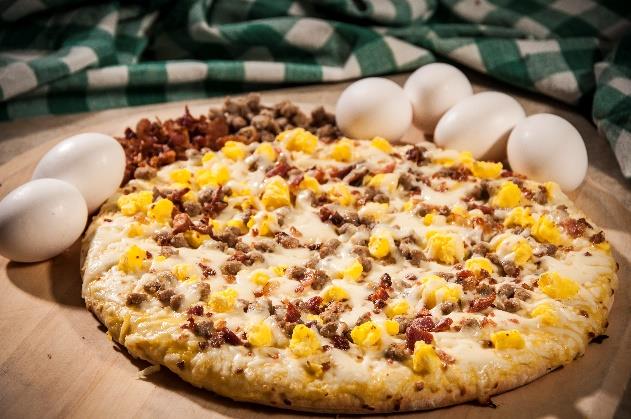 Nardone Bros. Pizza, WG, Self-Rising Breakfast, 12"; must be whole grain rich and provide 2 ounce grain equivalents and 1 ounce of meat or meat alternate. Portion to provide at least 205 calories, with no more than 10 grams of fat. Must contain less than 580 milligrams of sodium. CN Label required. Acceptable brand: Nardone Bros. 12WBR.