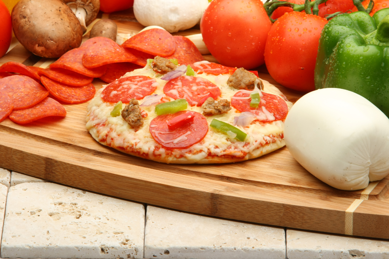 CRUST: Water, Whole Wheat Flour, Wheat Flour Enriched (Wheat Flour, Malted Barley Flour, Niacin, Reduced Iron, Thiamine Mononitrate, Riboflavin, Folic Acid), Soybean Oil, Vital Wheat Gluten, Sugar, Salt, Yeast. CHEESE: Low Moisture Part-Skim Mozzarella Cheese (Pasteurized Part-Skim Milk, Cheese Cultures, Enzyme, Natamycin). SAUCE: Tomatoes (Water, Tomato Paste [NTSS 31%],Contain 1% Or Less Of: Onion, Salt, Spices, Garlic Powder, Soybean Oil, Xanthan Gum. SAUSAGE: Ground Pork (No More Than 30% Fat), Water, Spices, Salt, Dextrose, Garlic Powder. PEPPERONI: Pork, Beef, Salt, Contains 2% Or Less Of Flavorings, Lactic Acid Starter Culture, Oleoresin Of Paprika, Sodium Ascorbate, Sodium Nitrite, Spices, Sugar, BHA, BHT, Citric Acid. Red Bell Peppers, Green Bell Peppers, Red Onion, Sliced Mushrooms, Olives (Ripe Olives, Salt, Ferrous Gluconate (To Stabilize Color).